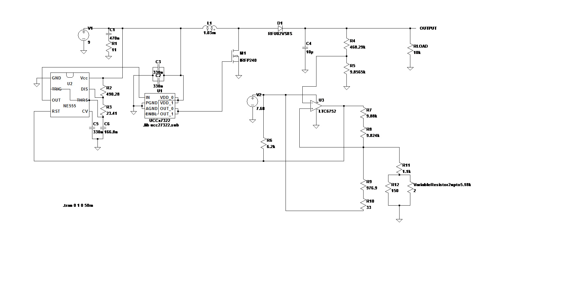 200V boost converter schematic in LtSpice |