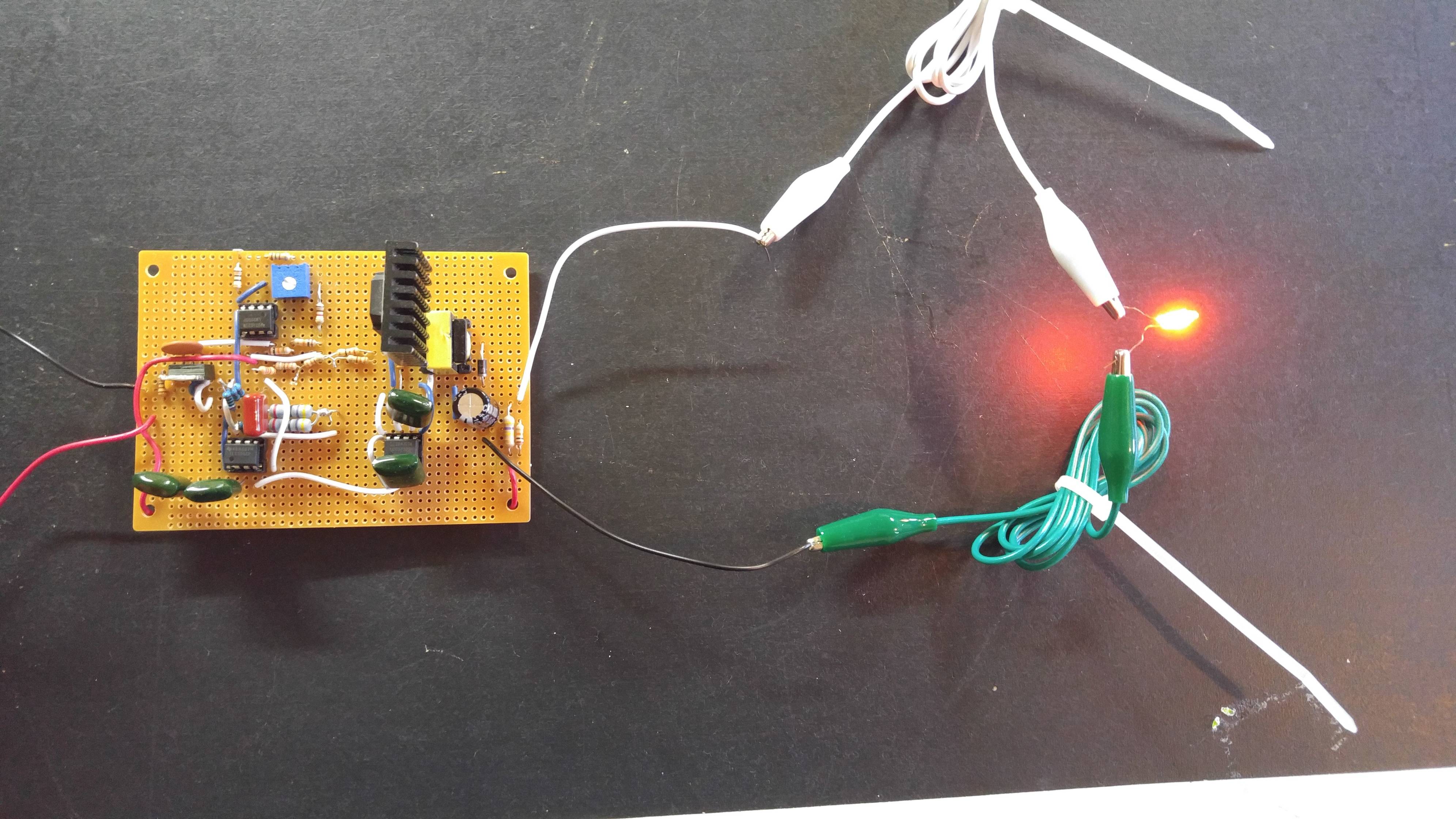 Here are a couple of pictures of the finished board and a demo with a NE-2 neon bulb.